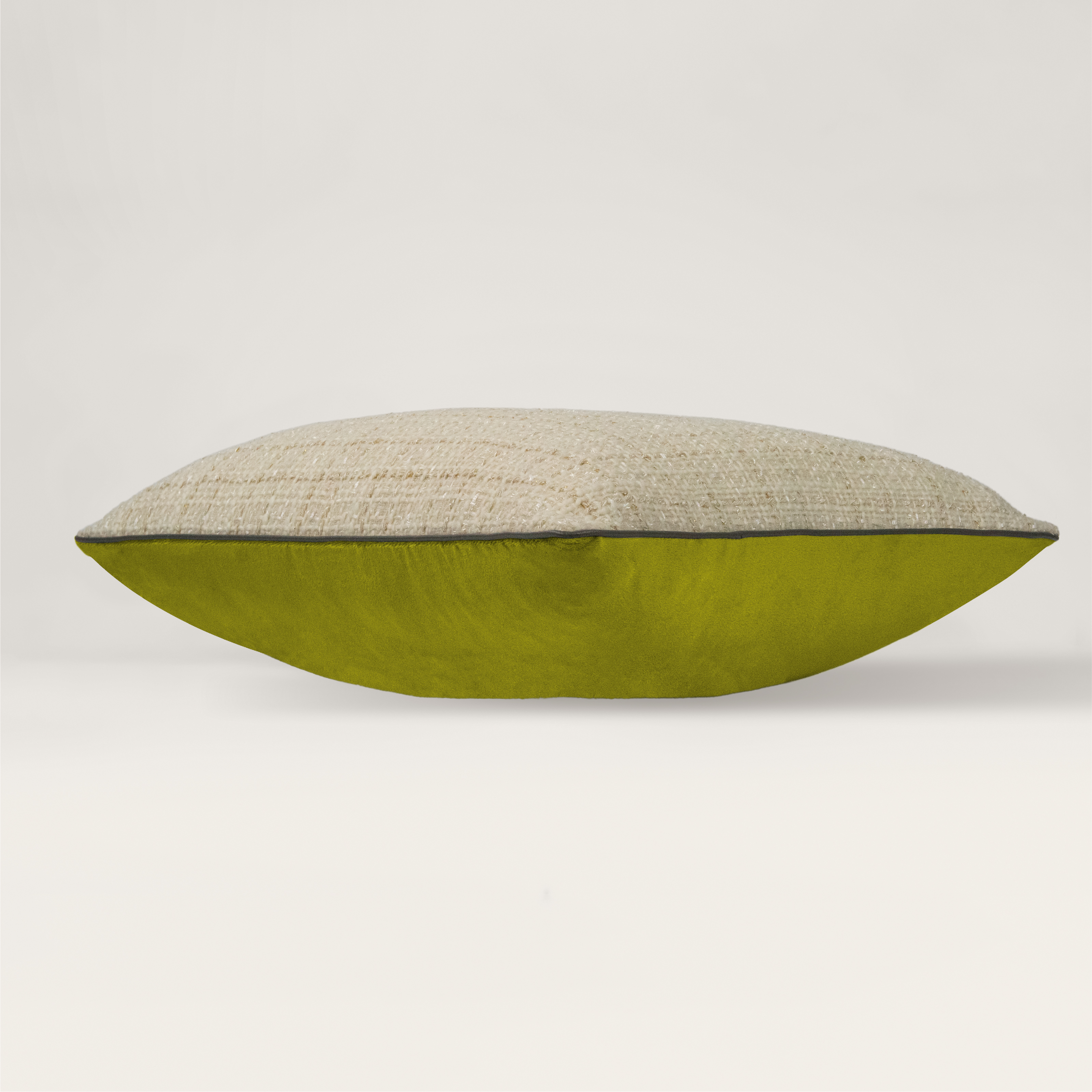 【 好憩 Horchill 】Cambon康朋 毛呢米金抱枕 – 芥黃 *抱枕含枕心 材質 : 毛呢+絨布+人造皮 尺寸 : 50x50cm ±5%