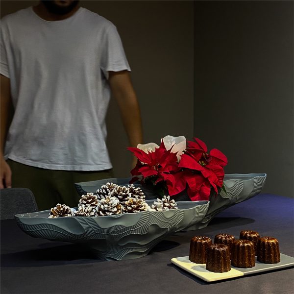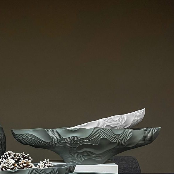 自然系列 葉紋長形花器-大 莫蘭迪綠